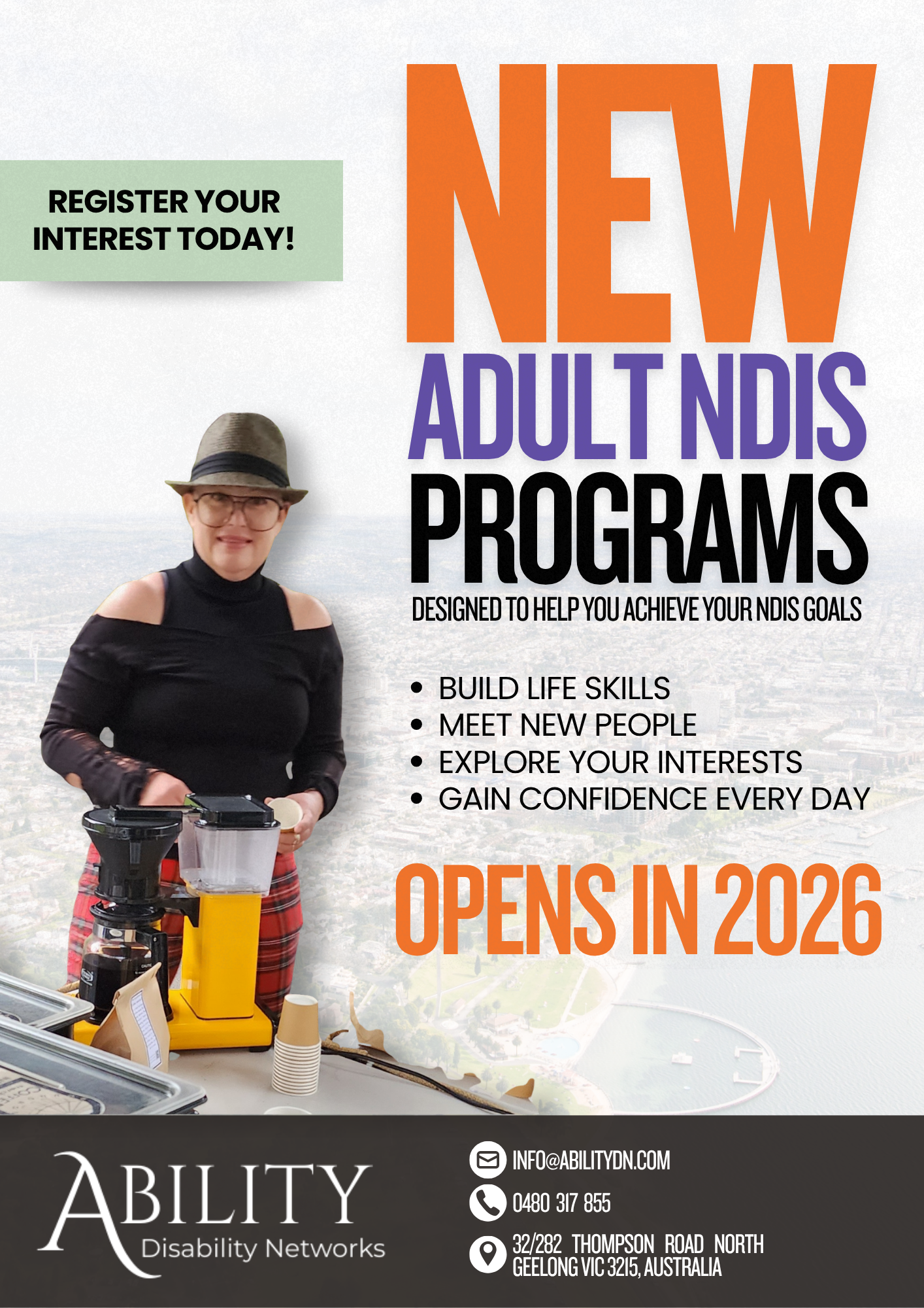 Ability DN is passionate about creating inclusive, engaging programs for adults of all abilities. Whether you’re interested in social groups, creative workshops, fitness sessions, cooking, or community outings, we want to hear from you.